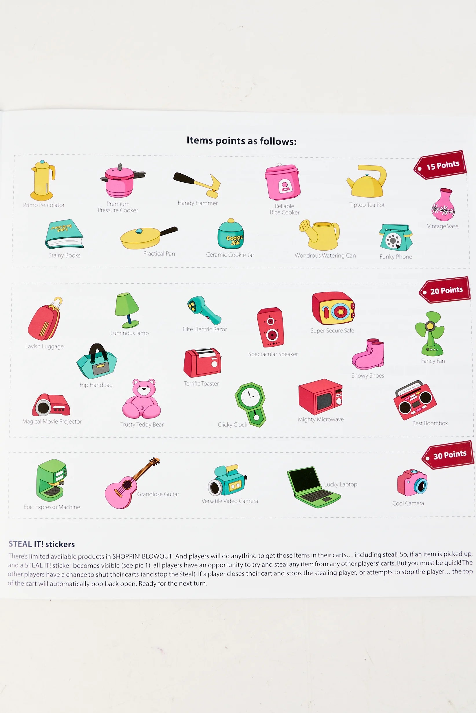 use the board, the included items, and your mobile phone and app to play the game. Simply install the Shoppin'Product Selector app, look at which item is ready to grab next, and be the first to bring home the deal